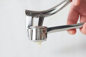 - にんにくは皮をむき、ヘタを落とし、みじん切りにする。にんにくつぶし器があれば、つぶしておく。