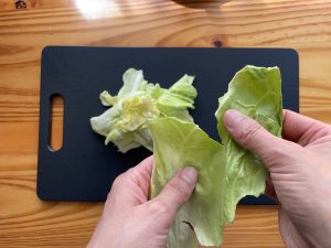 - 春キャベツはよく洗い、一口大の食べやすい大きさに手でちぎる。