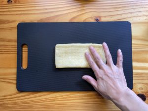 - 油揚げは塩を振りかけ、よく手でなじませる。