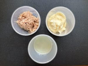- ツナ缶・マヨネーズ・レモンの絞り汁を、6:6:1で合わせる。サンドイッチの具の調味料として使う。