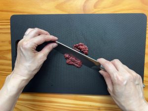- 梅干しはタネを外し、包丁でみじん切りにする。