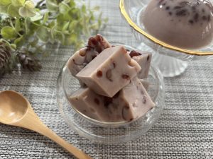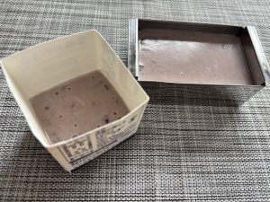- 流し箱や、牛乳パック、プリンカップなどに流し入れ、粗熱が取れたら、冷蔵庫に入れ約1時間程度冷やし固める。