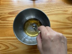 - ボウルに、酢・砂糖・ごま油・塩・粉山椒を入れ、調味料を合わせておく。