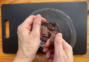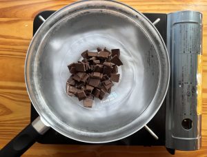 板チョコをなるべく細かく砕き、耐熱のボウルに入れる。