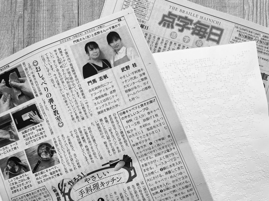 2023年4月から、「点字毎日」さんに、月1回レシピを連載させていただいております。